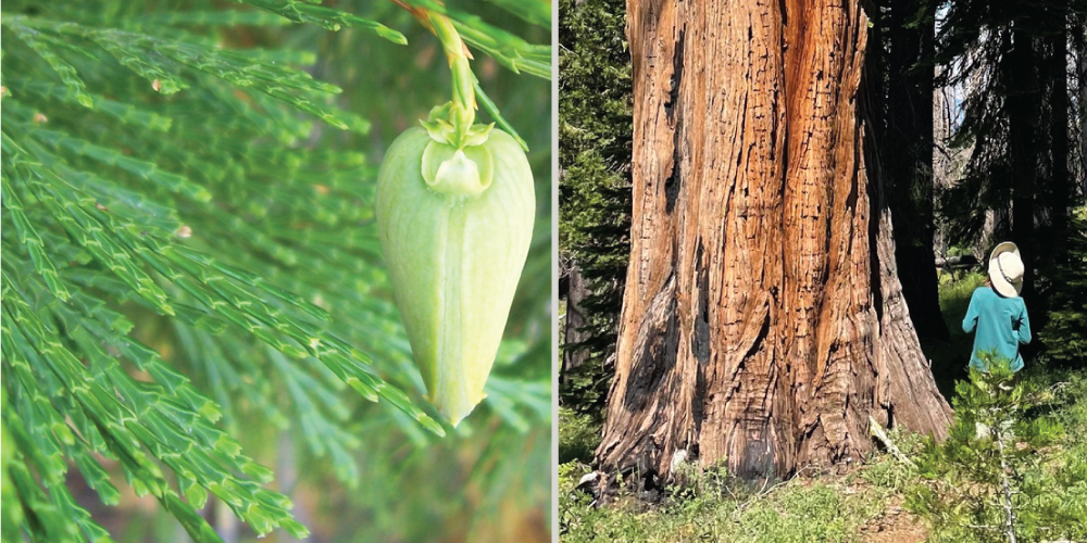 Incense-cedar is a California forest native of the Sierra Nevada and interior Coast Ranges. While its territory doesn’t meaningfully overlap with coast redwoods, its tall, straight trunk and warm, cinnamon-colored bark often lead people to mistake it for a giant sequoia.